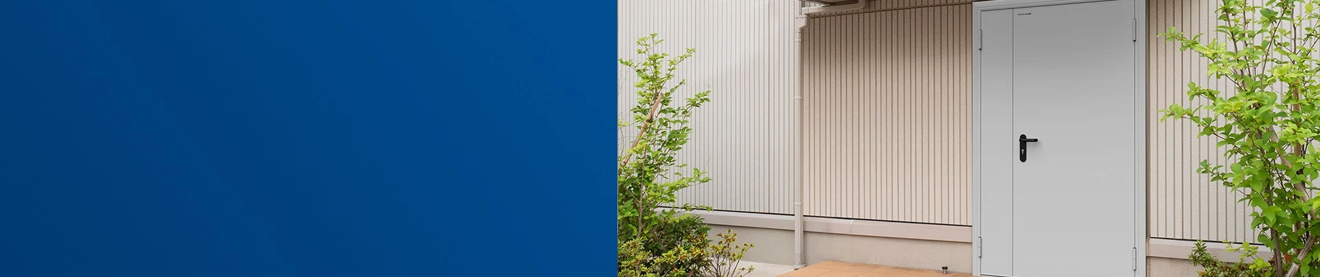 С наружной и внутренней стороны дверь окрашена порошковой краской в RAL7035 (светло-серый) и имеет структуру поверхности «шагрень». Такое исполнение очень практично в эксплуатации — скрывает мелкие царапины и загрязнения, легко очищается без использования специальных средств. По желанию клиента возможно остекление. Имеют широкую линейку размеров. Лишь в редких случаях клиентам необходимо изготовление на заказ. Средний срок службы составляет 15-20 лет.